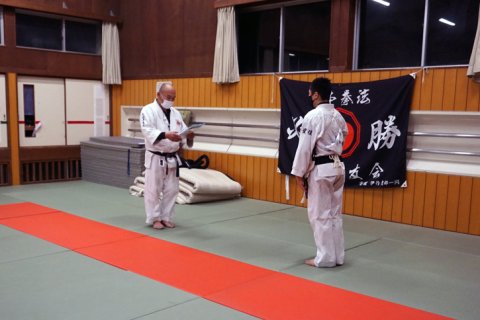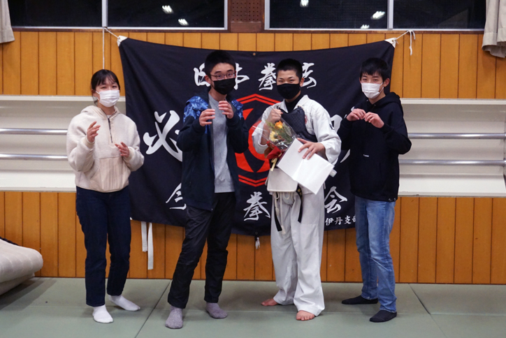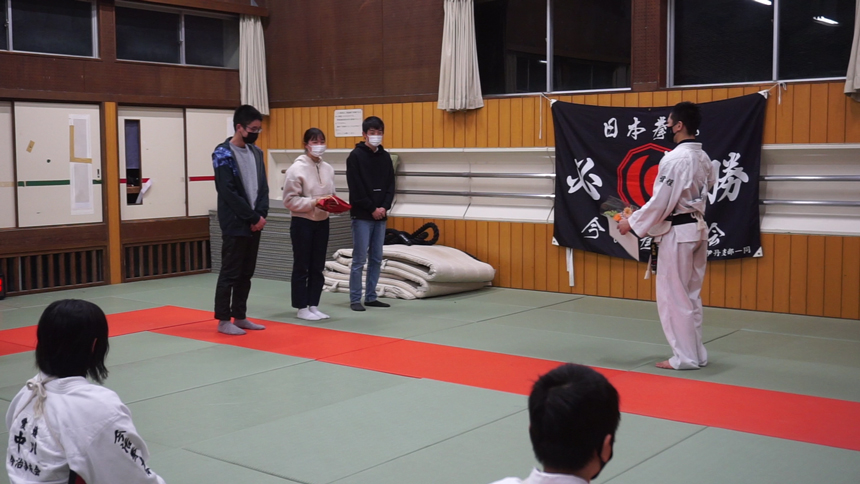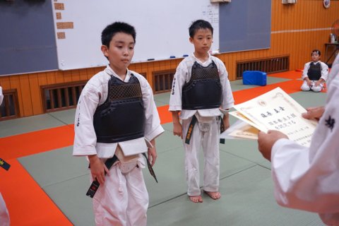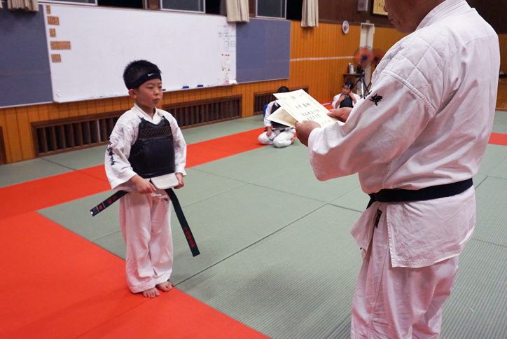 初段に合格した時は、 これまでの頑張りとこれからの活躍を祈念して、今治拳友会より黒帯を贈呈します。