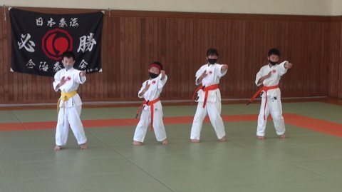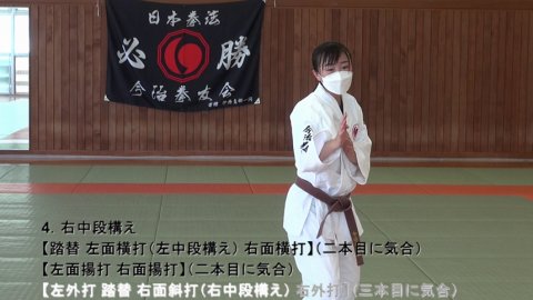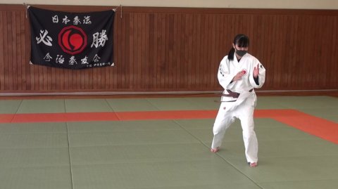形の基本は、左構え(左手、左足前)ですが、右構え(右手、右足前)も可としています。