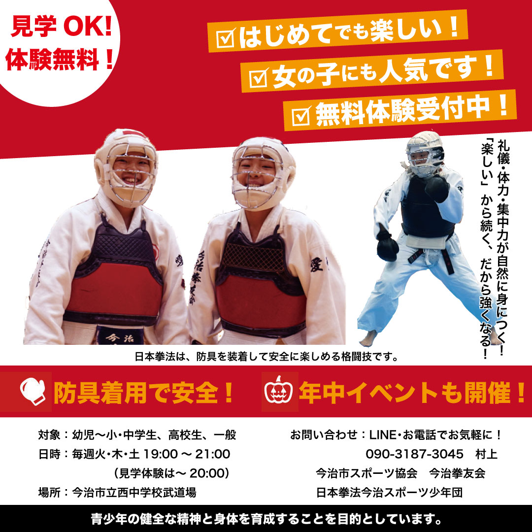 このたび、「いまばり武道フェスタ」のチラシが完成しましたので、ご紹介させていただきます。