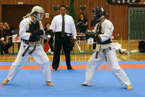(左) 中井大貴 (吹田市日本拳法連盟/大阪) vs (右) 田村 虎太郎(今治拳友会)