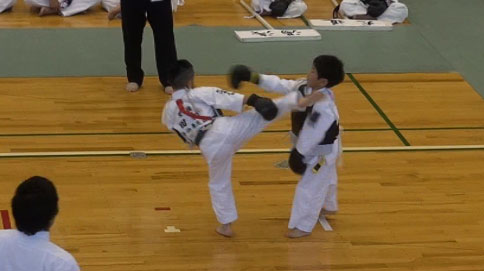 門田 佳太 胴突きと相手の蹴りのカウンター、蹴りが顔面に当たって鼻血が止まらず、ドクターストップにより、試合続行不能、無念のリタイア。ん~残念。(泣) どんまい~。