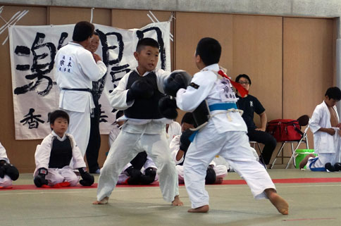 小学一年生のあいりの闘ちゃんが、【段外の部】で、大会デビュー、初めて見る日本拳法の大会、自衛隊の選手相手に初勝利を飾りました。しんたの本日の成績は二勝一敗でベスト16!デビュー戦初勝利おめでとう