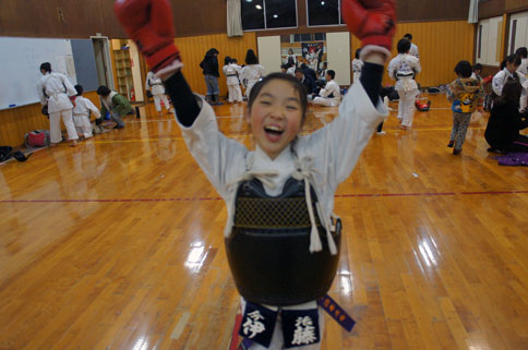 最初は泣いてしまったんですが、防具練習で笑顔復活。