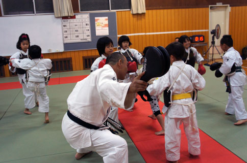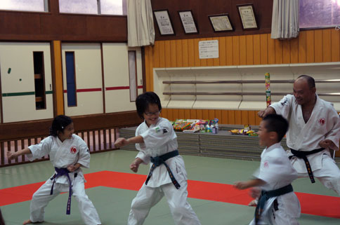 「一人で五人分の気合い」がモットーのコタロー指導員、四年生のモモ、そらの三人組の号令で気合いの十本突きで締めようと思ったんですが、