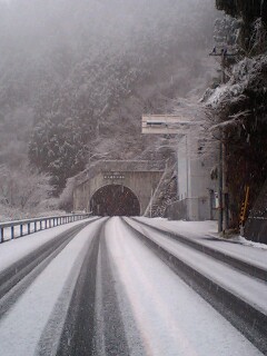 朝、国道317号線・玉川経由で松山市に向けて車で走る。気温は0 度、途中パラパラと雪が降り出す。水ケ峠トンネルに差し掛かる頃には路面は真っ白になる。
