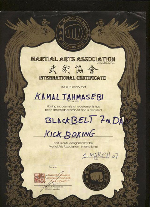 Kamal Tahmasebi 、黒帯の保有者、8段
