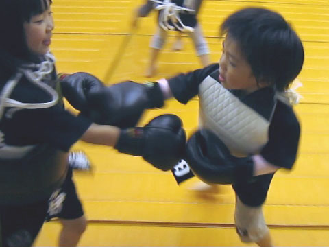 R香の突きが、顔に当たってしまって、コタロー指導員「痛てぇ~。」(хх。)