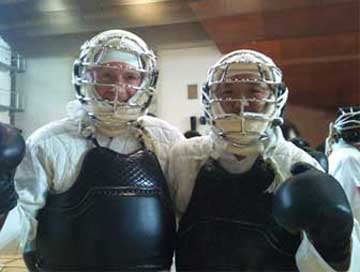 対戦後、健闘を称え合うAlexis Ulmerさんと東温拳友会代表の矢野指導員。