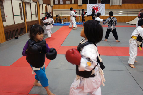 中学一年生のK騎、小学四年生トリオは、少年部の稽古終了後も、一般部と一緒に練習をしている常連組です。