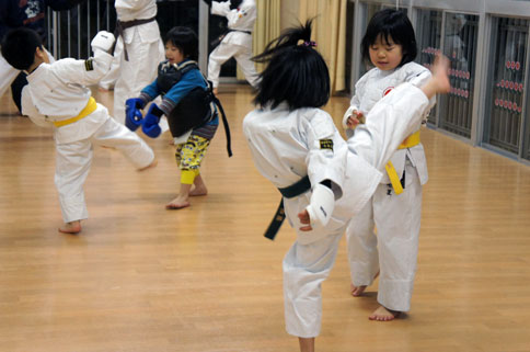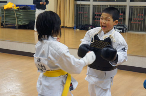 稽古の締めは、モモの号令で気合いの十本突き。