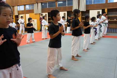 幼稚園組のコタロー指導員を先頭に、基本稽古開始。