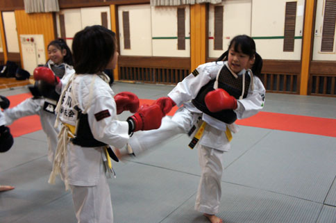 少年部稽古終了後、先般の昇級審査で見事合格した子ども達へ、級の認定書の授与。