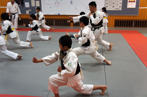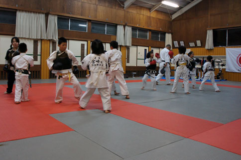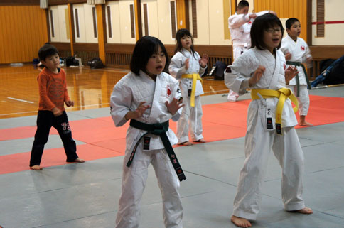 少年部の稽古の締めは、気合いの十本突きで気持ちよく締めました。