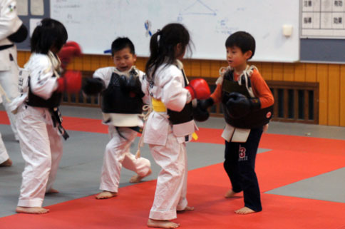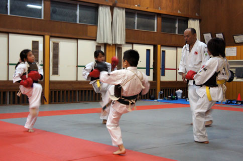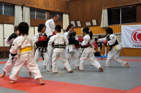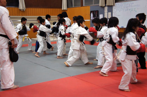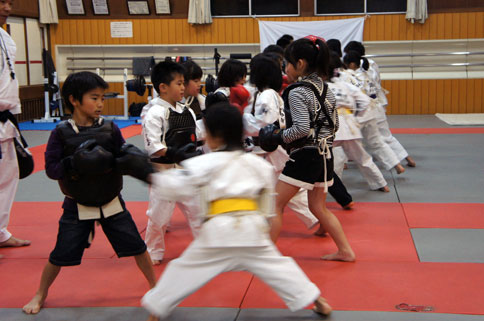 音がするように、しっかり突く、相手が揺れる位、しっかり蹴る。相手の攻撃に下がったほうが負け!