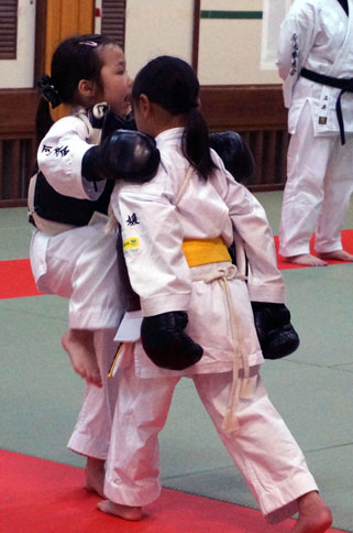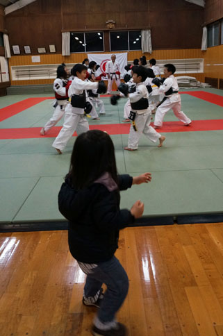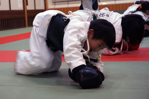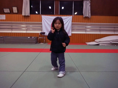 少年部稽古が終わって、一般部の稽古の時間に、眠たそうに目をこすりながら、闘ちゃんに連れられてやってきたのは小学校五年生の○○。