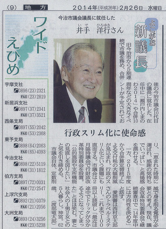 2014(平成26)年2月26日(水)付 愛媛新聞。