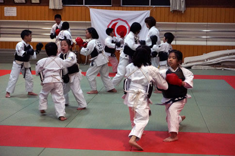 幼年から、小学生、中学生、三密会の少年部の参加者はざっと数えて50名余り、全員揃うと80名いるんだとか、体育館が狭く感じます。流石日本拳法発祥の地大阪、三密会。