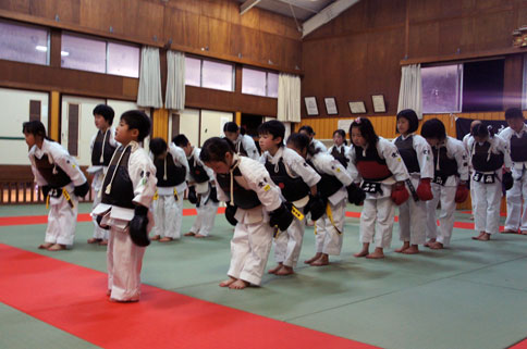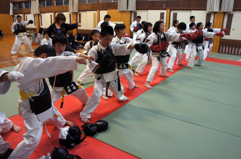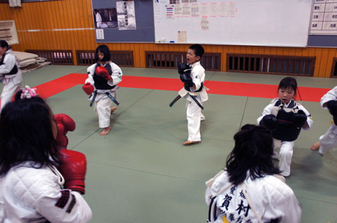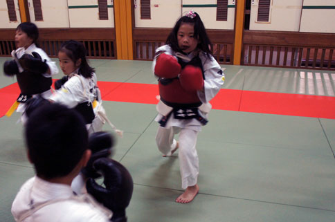 少年部稽古の締めは、小学校五年生のりんかの気合いの十本突き。