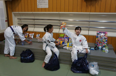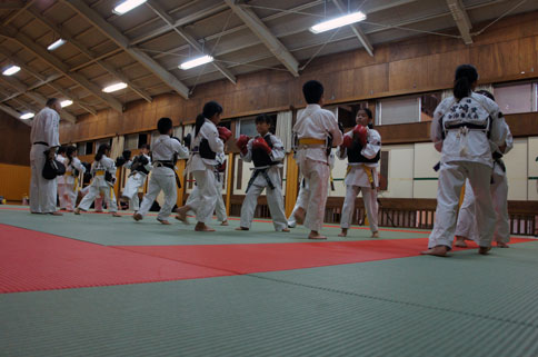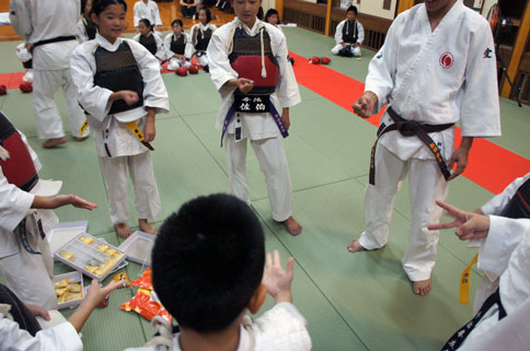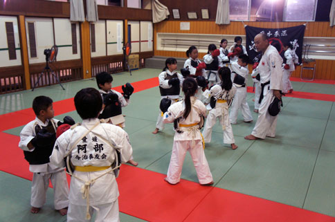 少年部稽古終了後も、居残り組の子ども達の自主練習。