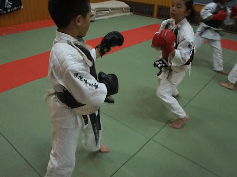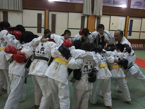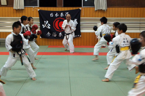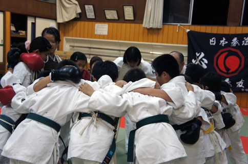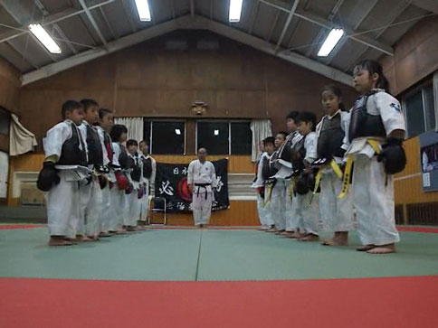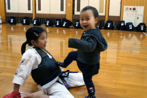 少年部主将のあーちゃんことあかねと「一人で五人分の気合い!」がモットーもコタロー指導員の号令で気合い!