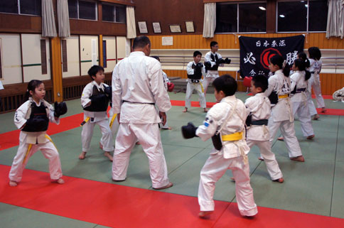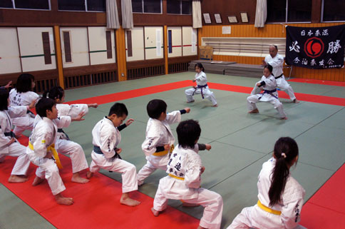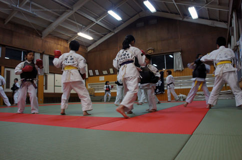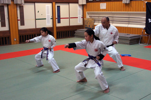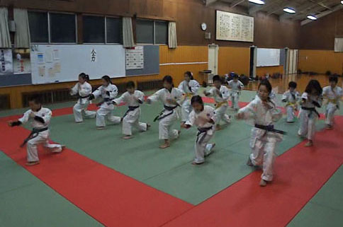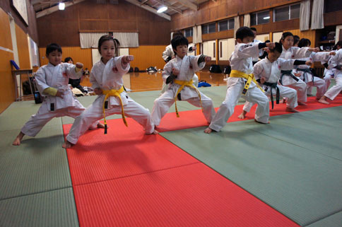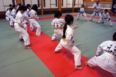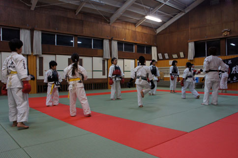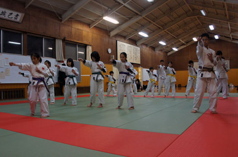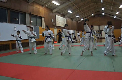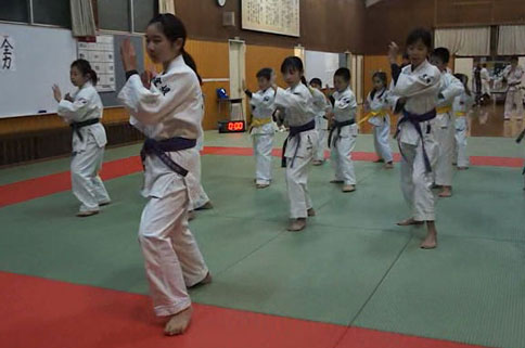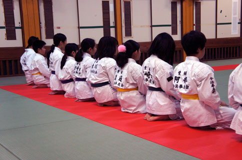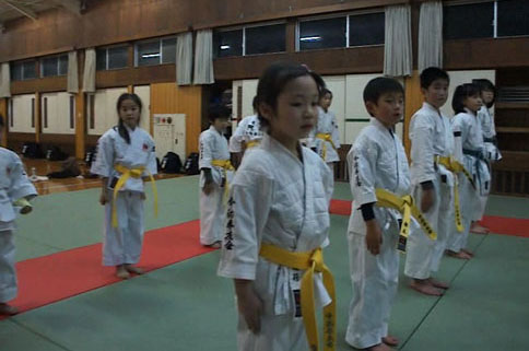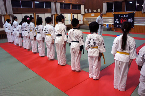 少年部稽古の締めは、小学校五年生組のモモとあいこの号令で