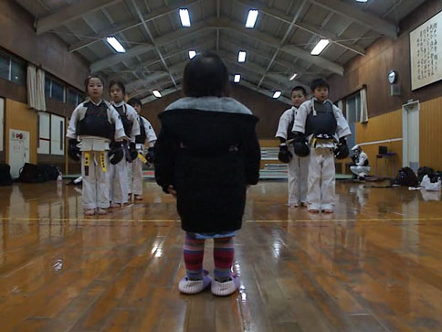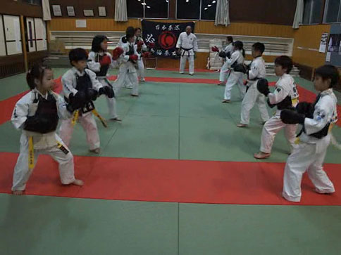 少年部稽古終了後は、居残り組は隣の剣道場に場所を変えて