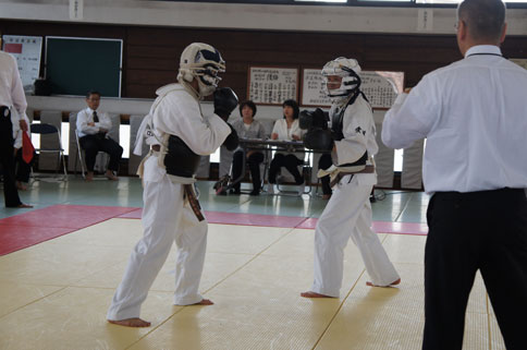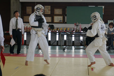 一本取られ、時間切れ間近、一本旗が上がるも二本上がらず不十分。