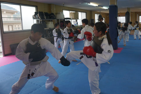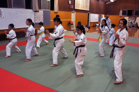 あかねの気合い、気迫、一生懸命さが、今治拳友会の少年部を引っ張る。