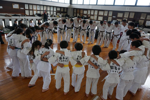 開会式前に、みんなで円陣を組んで、気合いを入れました。