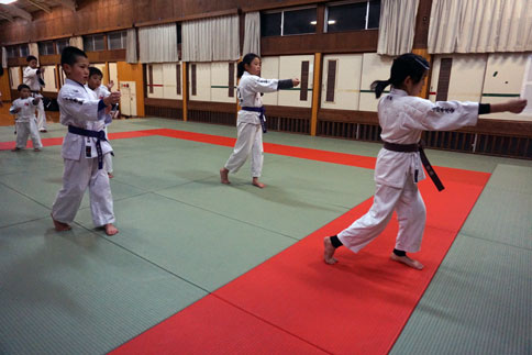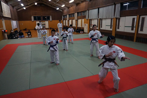自転車は倒れるような強い冷たい風が吹き、欠席者が続出する中、道場に来た子ども達。