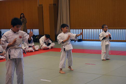 まずは、初回受験、白帯組。号令に合わせて、基本動作。