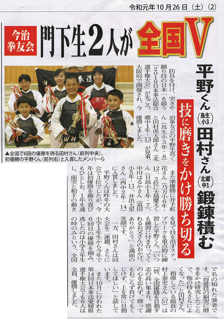 まいたうん No.786 今治拳友会 今治拳友会 門下生二人が全国V