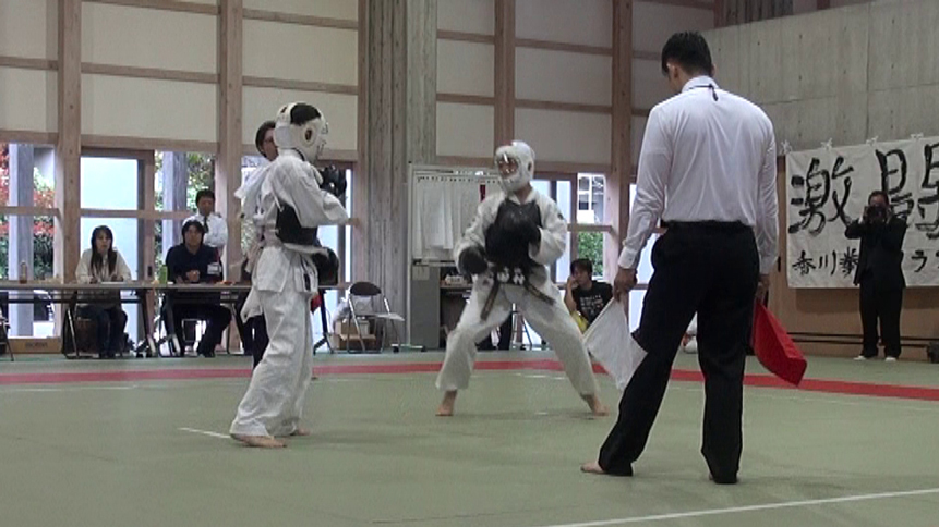 白) 大島 慶太 (今治拳友会) vs 赤) 中一 詩音 (徳島県連盟)