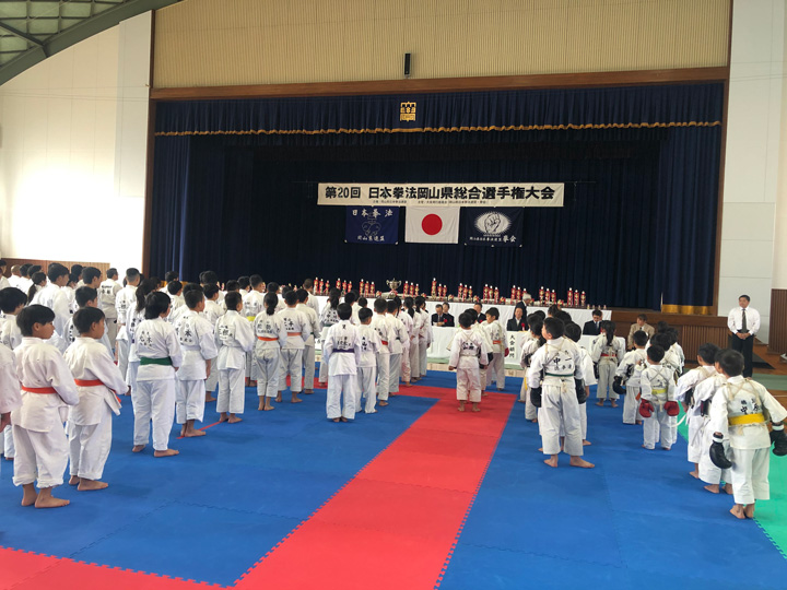 今治拳友会少年部から、岡山県大会に挑戦する子ども達は3名、伊丹支部、岩国支部併せて合計17名参加、2名欠場。
