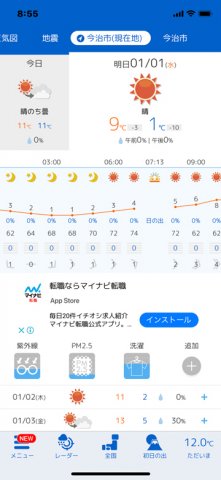 大晦日、いまばりの天気は晴れのち曇り、明日の天気予報は晴れ!