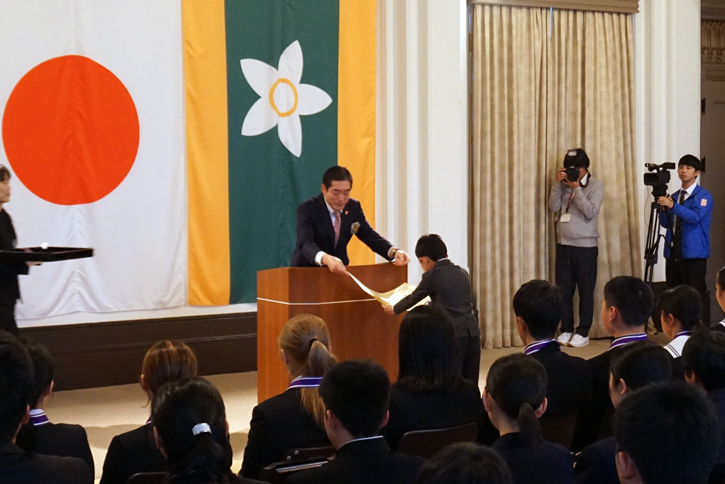 昨年総合選手権優勝の県知事表彰式が年越しの3月に開催された為に、今年春の全国少年大会優勝、今回今年の総合選手権優勝の県知事表彰式で、今年三回目の県知事表彰式になりました。
