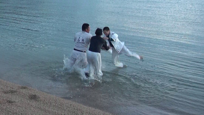 寒稽古終了後は、寒中水泳大会?が始まる。