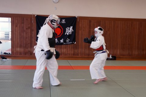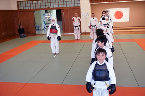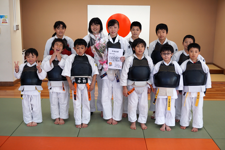 卒団の儀式、三月をもって卒団する少年部の子ども達との総当たり戦。