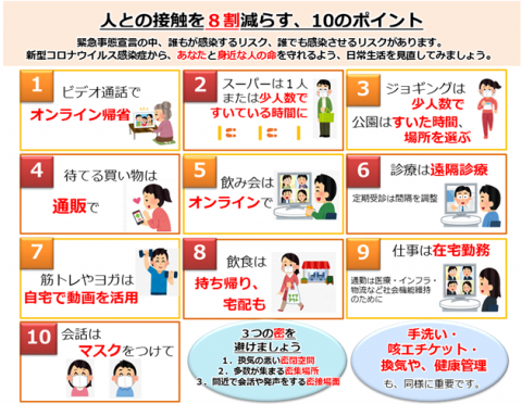 皆様には、あなた自身やあなたの大切なご家族を守るために、下記の感染拡大防止行動にご留意くださるようお願いします。