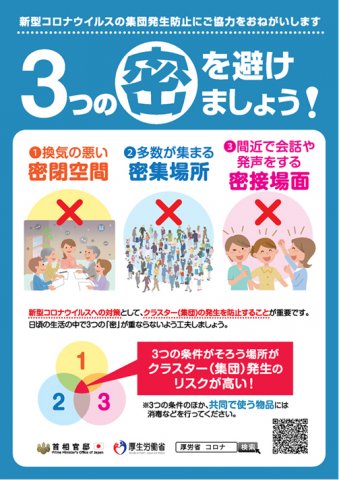 〇「密閉」、「密集」、「密接」の「3つの密」を徹底的に回避してください。