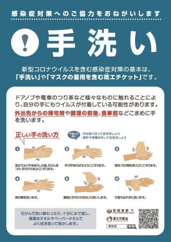 〇入念な手洗いや咳エチケット、室内の換気等の取り組みといった基本的な感染予防策を引き続き徹底してください。