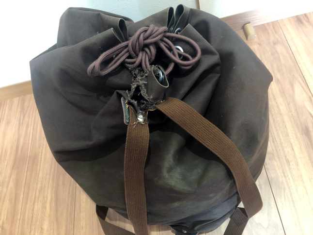 リュック式は、使い勝手が良いのですが、使い込んでくるといつも痛む、破れるのは、この防具袋に限らず、リュックのベルト取付部位。