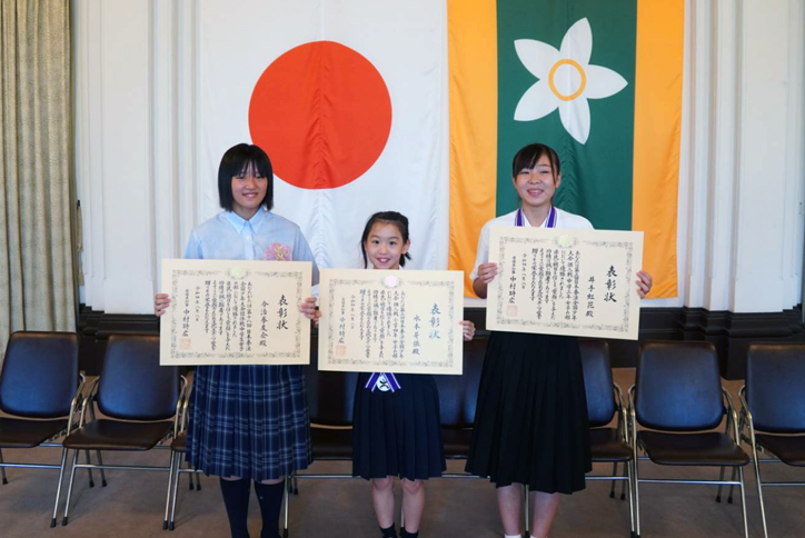 日本一にならないと貰えない県知事表彰、県知事が一人ひとりに賞状を読み上げられて手渡しされ、メダルをかけてくれるとても厳粛な表彰式で、賞の重みを感じ取れます。