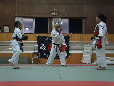 一緒に道着を着た少年が一人。坂倉先生のお孫さん?