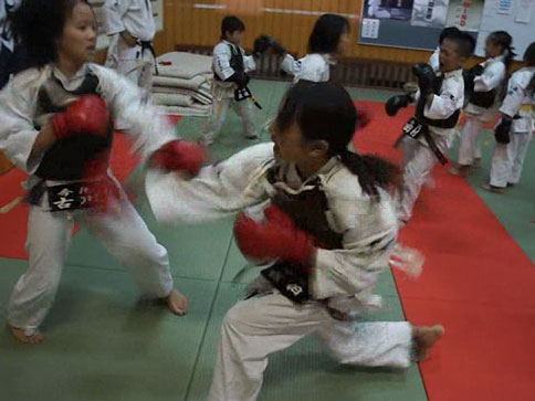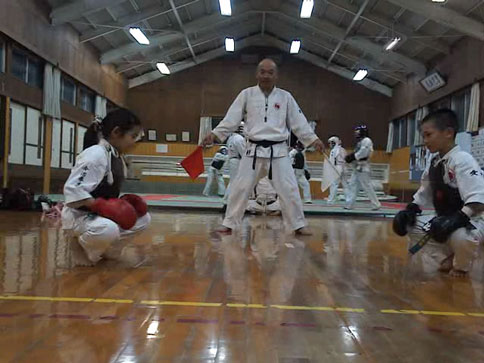 緒方副実行委員長の許可を頂いて、今治拳友会AKBの小学校五年生女子組の中へ、