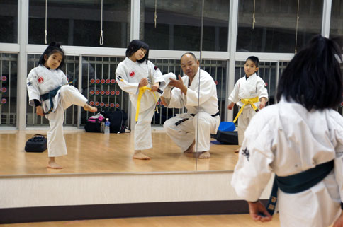 道場生の紹介で幼稚園組の男の子1名、小学校四年生と五年生の男の子が見学にいらっしゃいました。