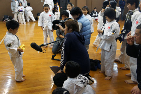 少年部稽古終了後は、頑張った子ども達のお楽しみ、皆勤賞のご褒美のお菓子セットの授与です。