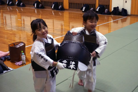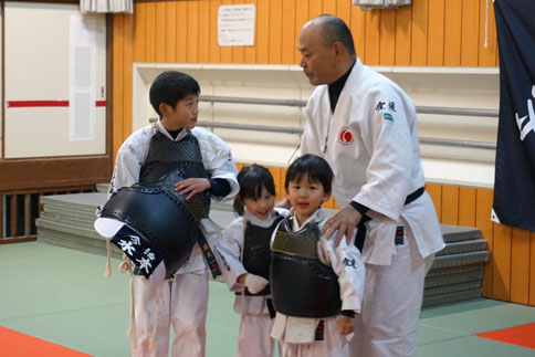 少年部稽古終了後、2017全国大会準優勝記念 拳法胴贈呈式を行いました。