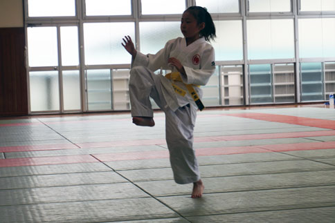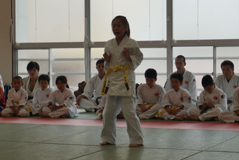 頑張れば、帯の色が変わる。小学校3年生のにじか。基本動作、形も全て一人。