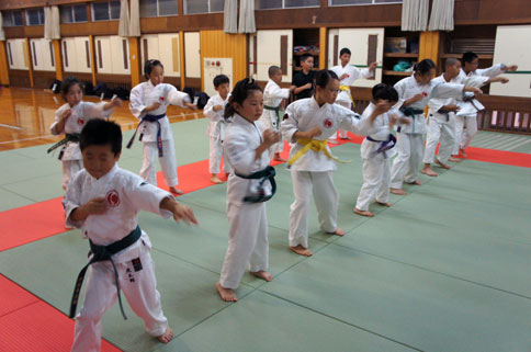 稽古の締めは、小学校四年生ののりこの号令で、気合いの十本突き。